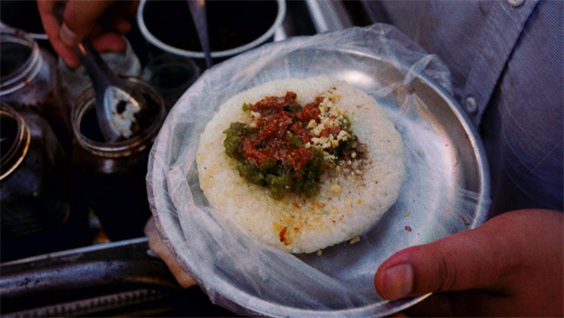 烤好的飯團(tuán)可以搭配十幾種醬料,燒椒醬、各種麻辣醬、花生碎、水豆豉、折耳根醬……吃烤飯團(tuán)當(dāng)然得配上燒椒醬啦!先抹上一層麻辣醬,再來(lái)上兩勺燒椒醬,一勺水豆豉、一勺花生碎,一口下去,簡(jiǎn)直不要太完美!