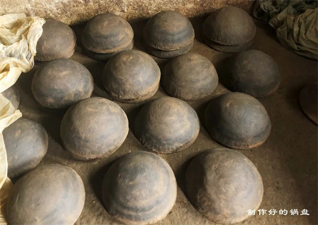 2. 做鍋盤(鍋身):用手工捏成雛形。經(jīng)曬干,以竹篾箍之,再次加工;而后制鍋腳,最后在盤內(nèi)中點(diǎn)制火管。并用木制